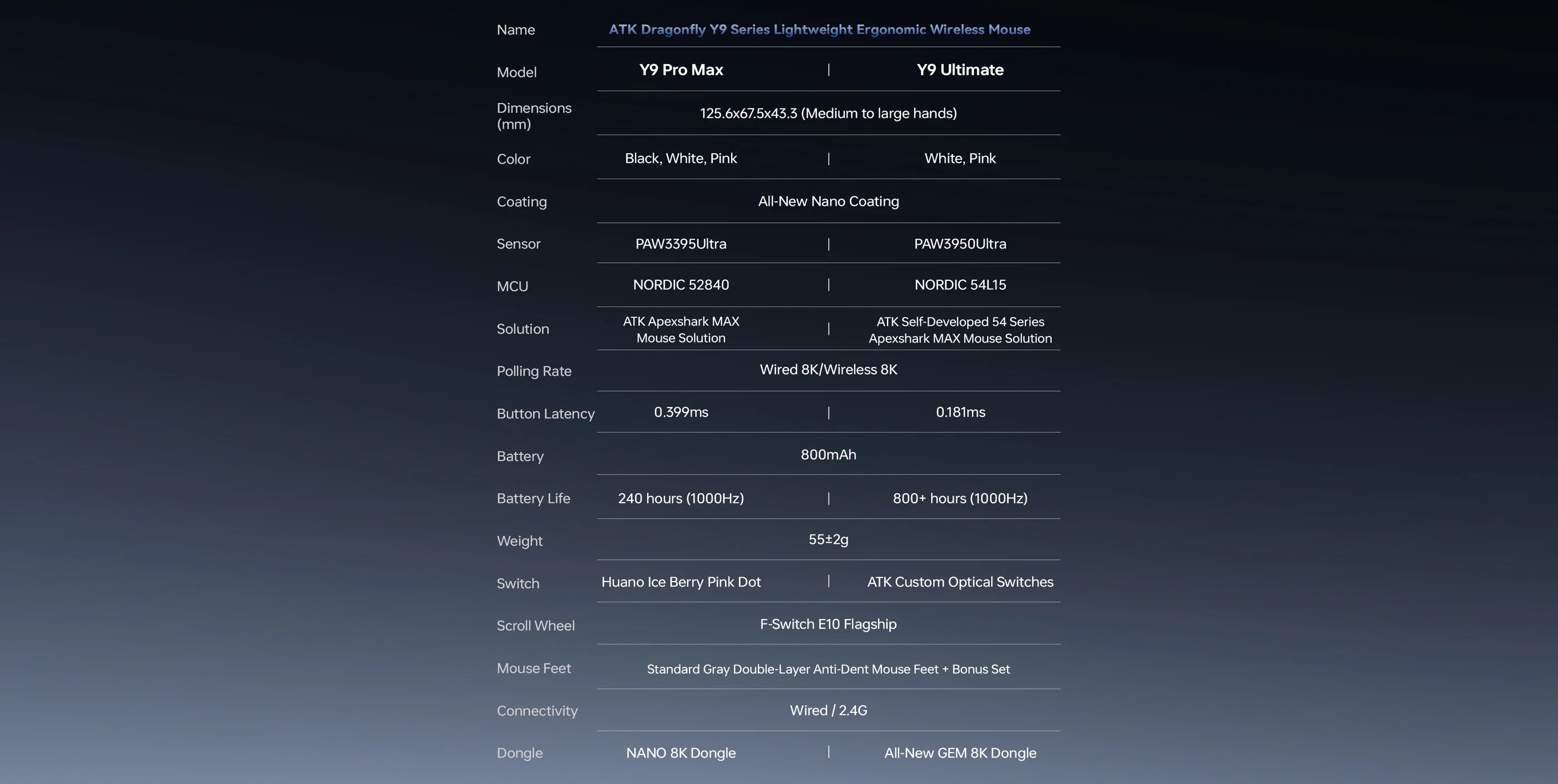 [Pre-order] ATK Dragonfly Y9 Series Lightweight Ergonomic Wireless Mouse