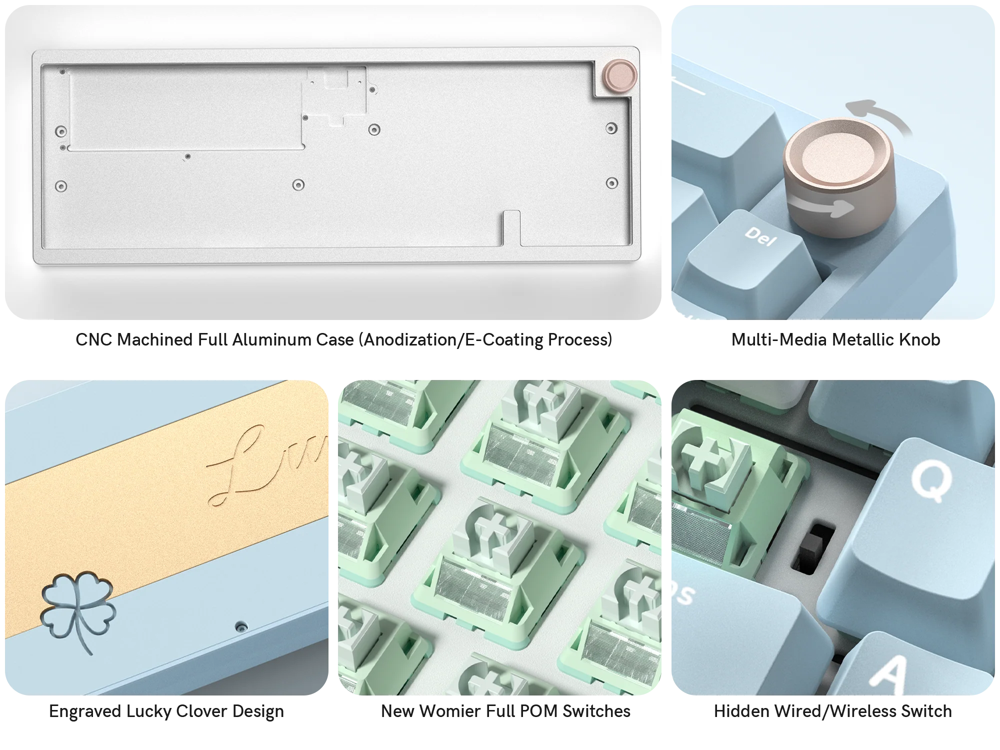 - Switches: Womier POM Mint Blizzard Switch