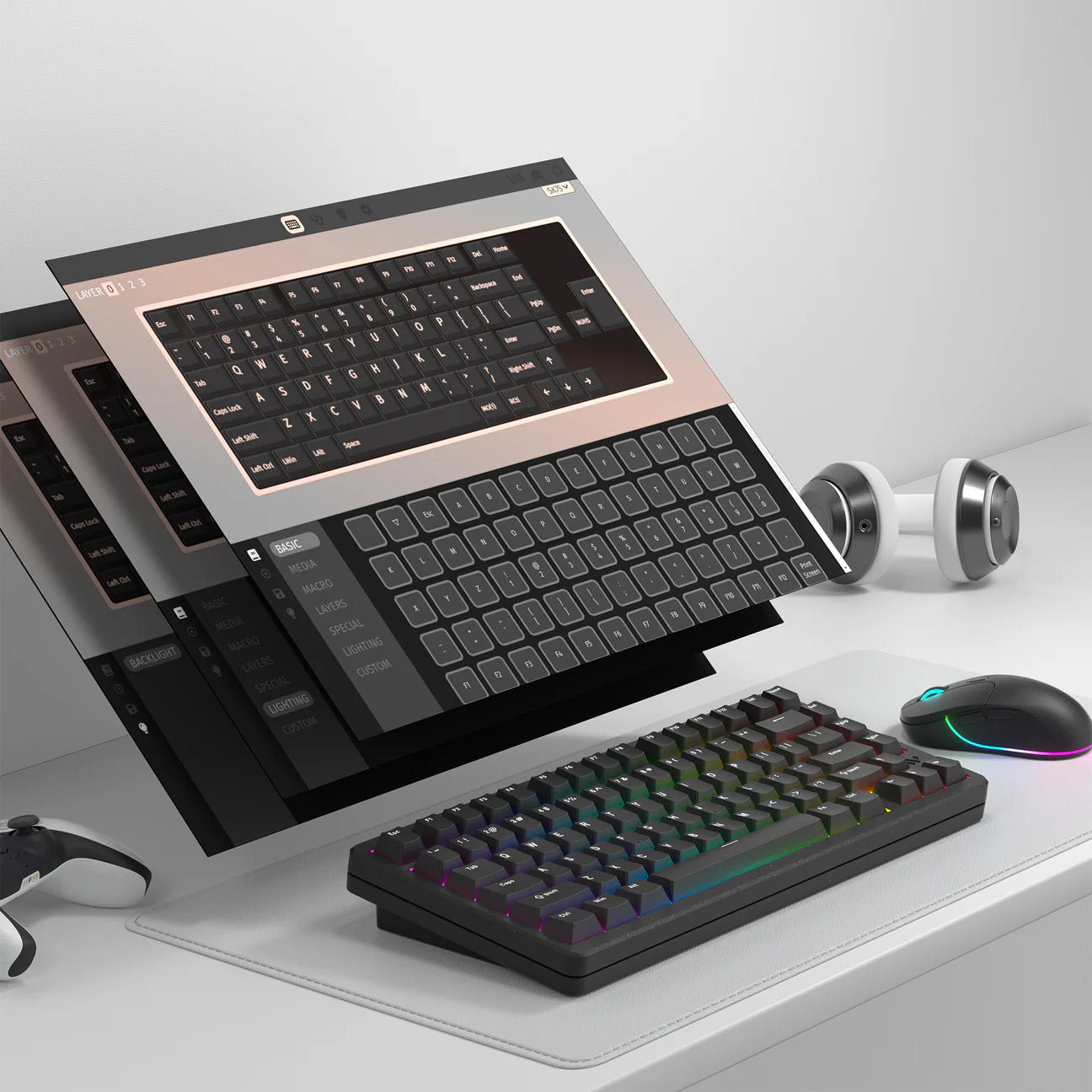The SK75 aluminum keyboard empowers unlimited possibilities of personalized settings with key remapping, macros, shortcuts, and key combination creations through VIA with ease.