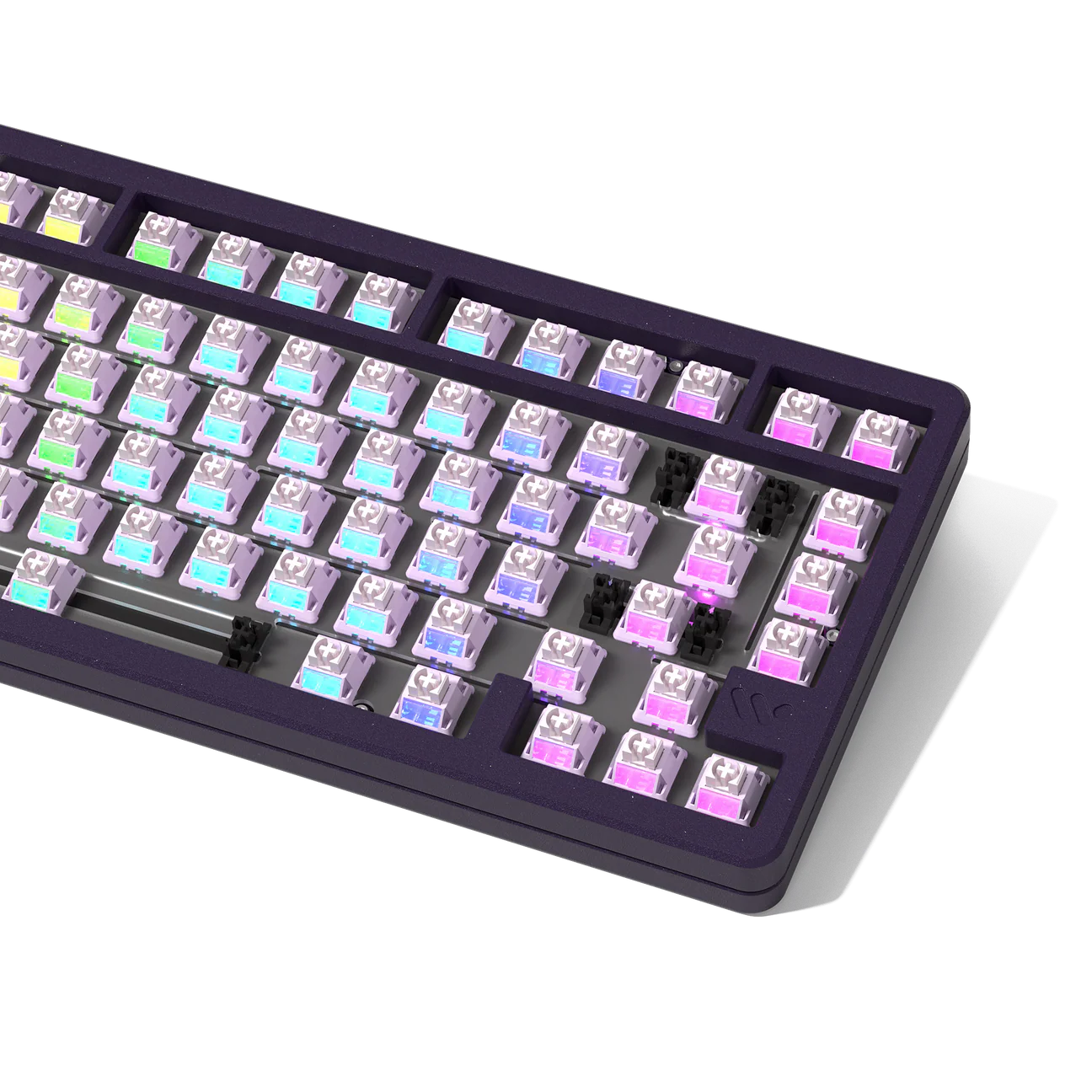 Enjoy soft and dynamic under-key lighting that shines bright with 18 preloaded immersive lighting effects on this 75% aluminum mechanical keyboard. They can be easily changed by your mood with shortcuts. Or customize your own lighting look and animation effects with programmable RGB LEDs using the VIA Configurator.