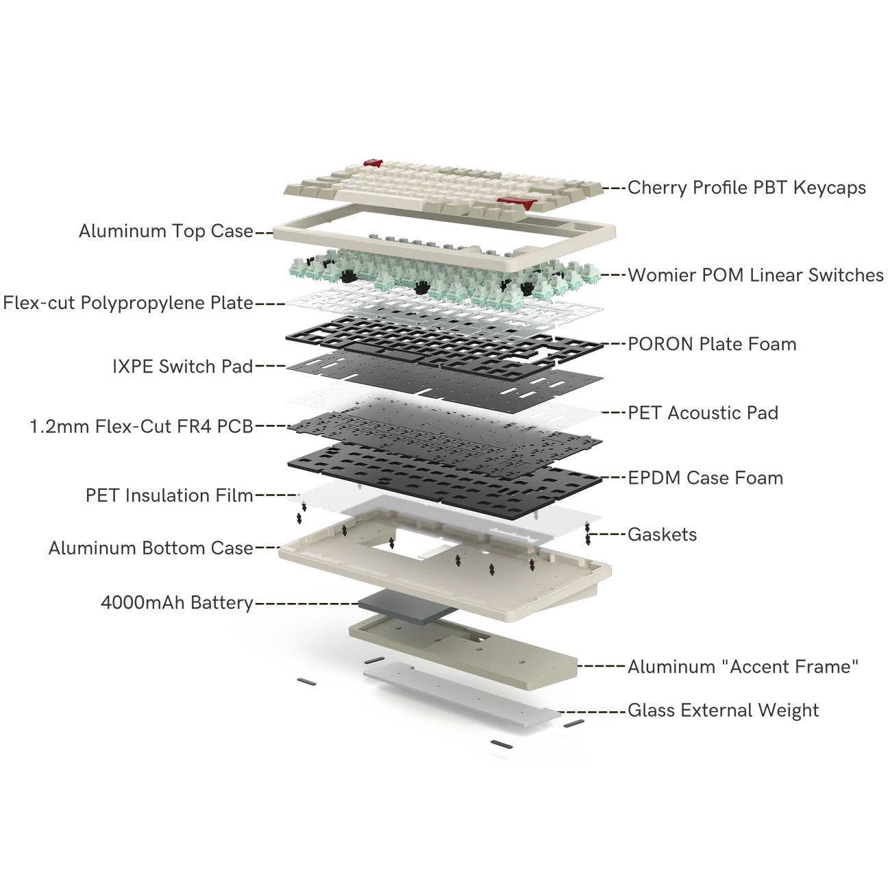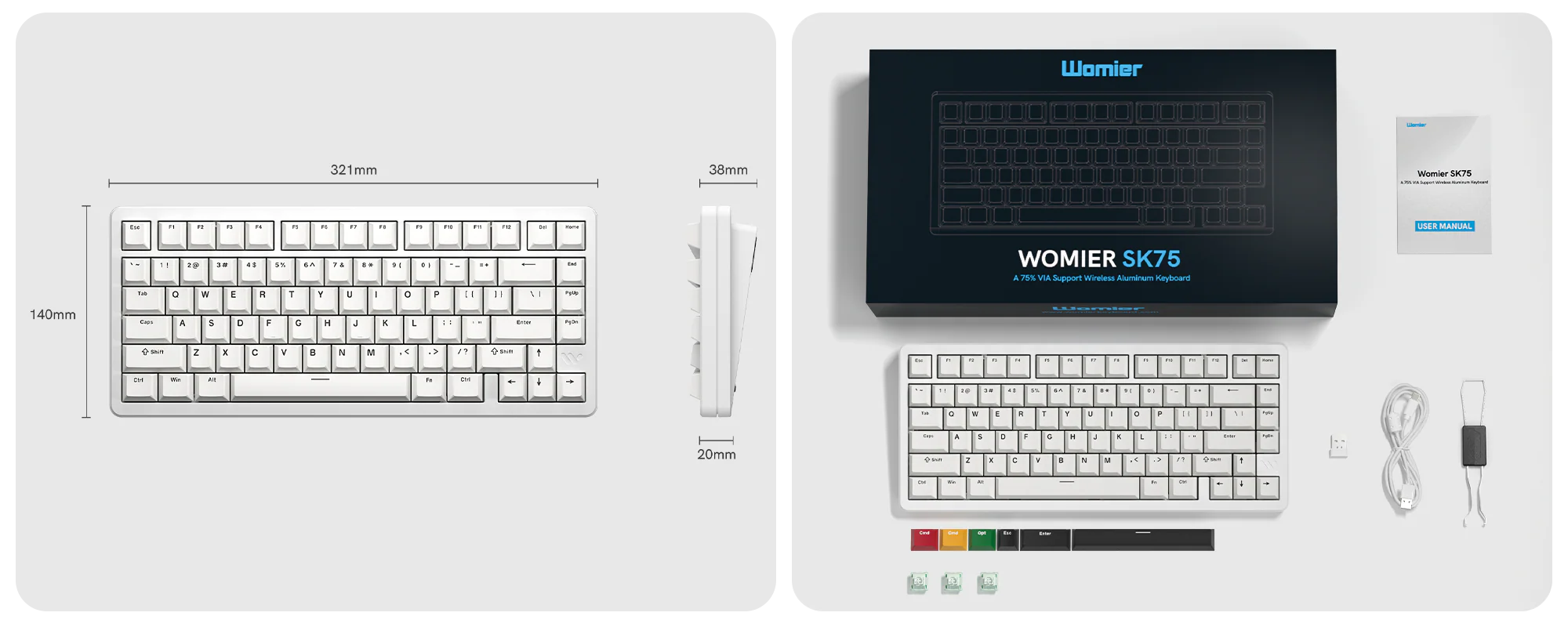 The Womier SK75 redefines what a 75% wireless mechanical keyboard can be. Crafted with high quality aluminum frame, it offers the perfect balance between minimalist design, premium feel and full functionality.
