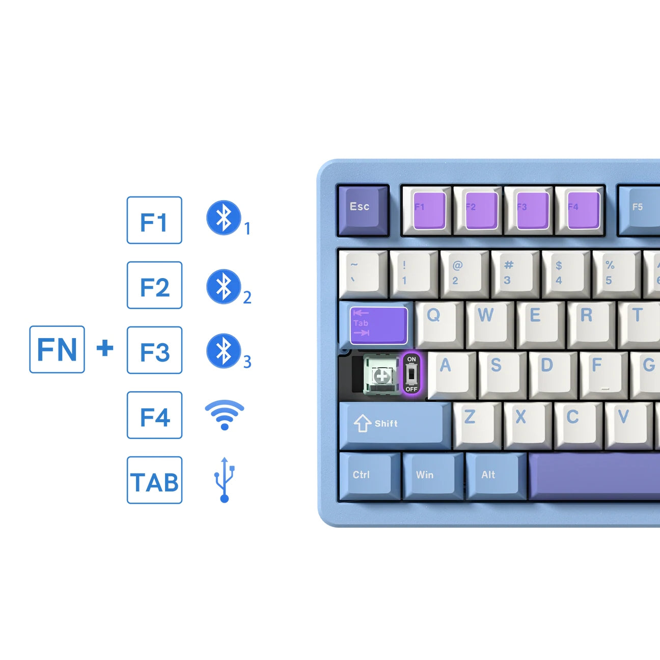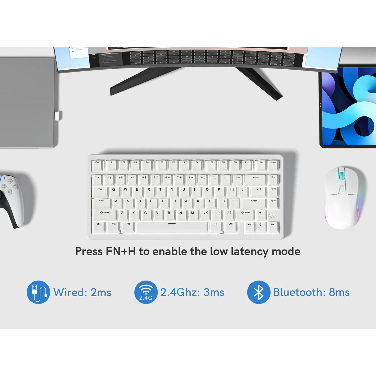 The SK75 aluminum mechanical keyboard can be connected wired or wirelessly via Bluetooth or the 2.4 GHz dongle, and when you turn on low-latency mode, you can take full advantage of its speed. This 75% aluminum keyboard will provide a superior user experience by offering faster response times, improved gaming performance, enhanced typing speed and accuracy, and a competitive edge in both gaming and work.