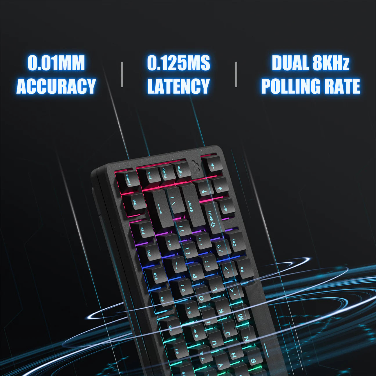 Meet the SK75 TMR, a next-generation magnetic switch keyboard that actually feels fast. Powered by TMR (Tunneling Magnetoresistance) magnetic sensing tech, it provides a stable, ultra-fast response. Zero dead zone, 0.125ms reaction time, full 8000Hz in both wired and wireless. No delay, no slowdown.