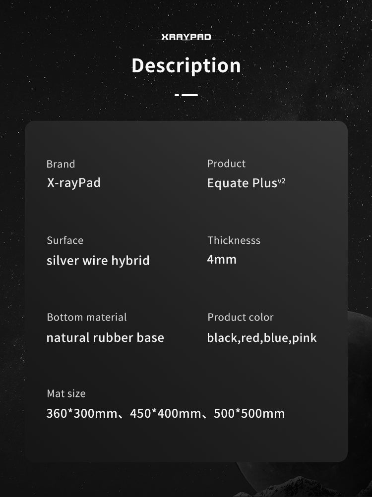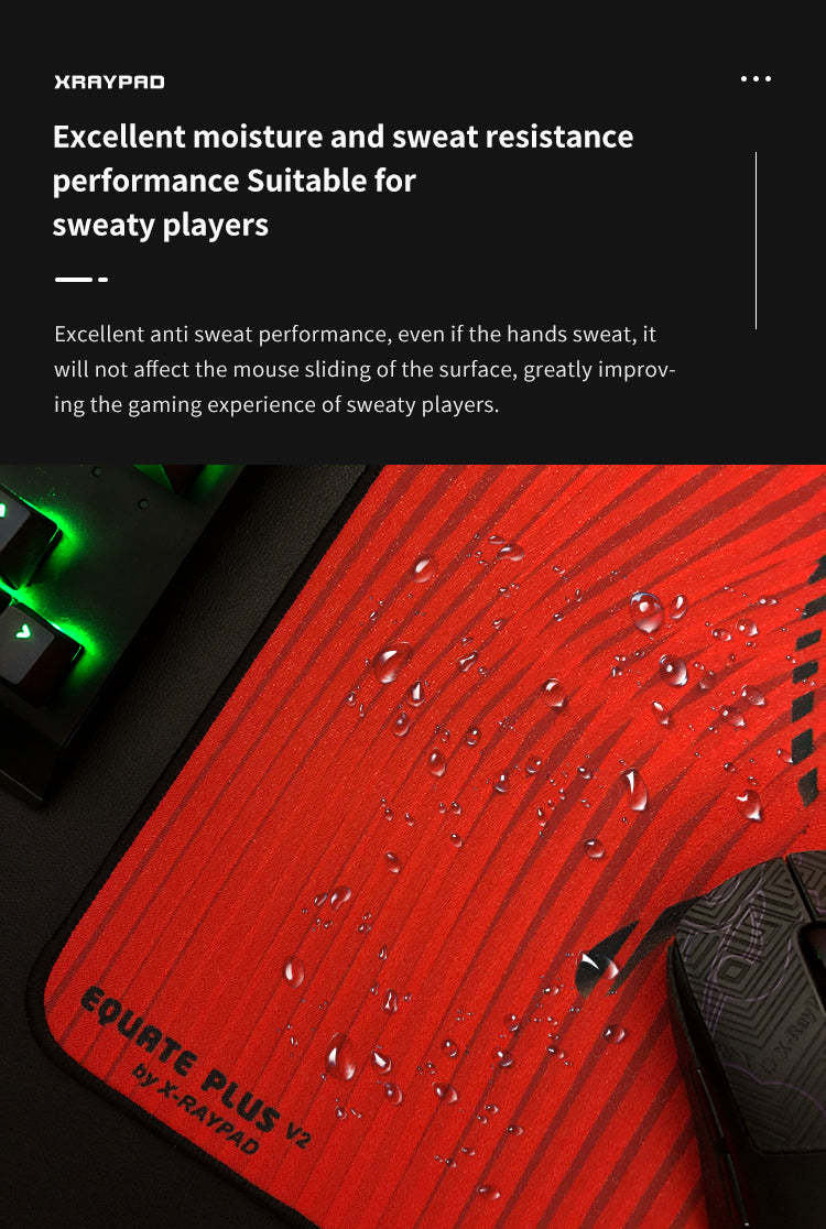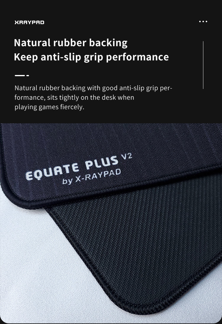 Equate Plus V2 is an improvement on Equate Plus, with a faster and smoother sliding surface. It also has very good control when sliding. The granular texture on the fabric surface effectively resists hand sweat and dust, extending the life of the mouse pad.